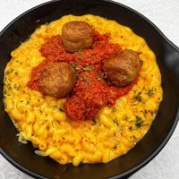 Creamy mac & cheese topped with crispy, flavorful bites for a delightful twist on comfort food.