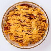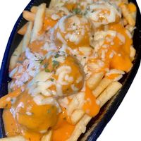 Fries, mac & cheese, crispy mince beef & cheese sauce