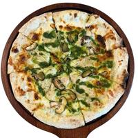 Grilled Chicken, pesto sauce, shitake mushroom and mozarella cheese.
