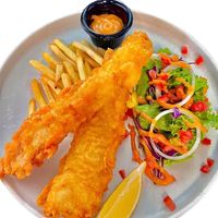 Crispy chicken with buttermilk sauce, salad & special sauce