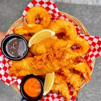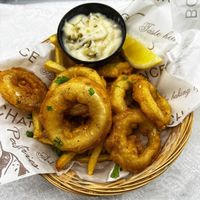 Calamari, mussel and tiger prawn, special tomato sauce and mozarella cheese.
