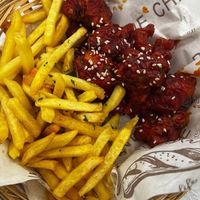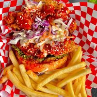 Crispy chicken with Korean sauce, coleslaw & special sauce