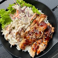 Juicy grilled chicken glazed in savory teriyaki sauce, served over a bed of fluffy rice.
