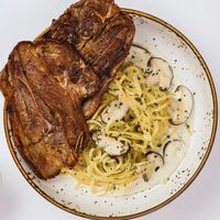 Spaghetti with white creamy sauce & NZ grilled lamb