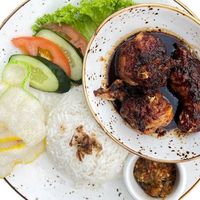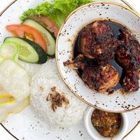 Nasi lemak, sambal, peanut, cucumber & grilled chicken