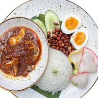 Nasi lemak, sambal, peanut, cucumber & sambal udang