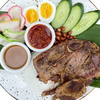 Nasi lemak, sambal, peanut, cucumber & NZ griled lamb