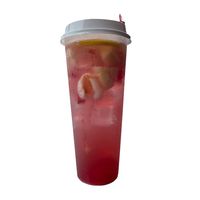 Refreshing iced tea infused with vibrant strawberries and citrus notes.